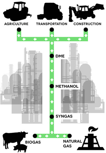 Oberon Fuels has developed a small-scale DME production technology, which can be skid mounted. Oberon sees the small units creating regional fuel markets, avoiding the cost of a national infrastructure. The company’s first plant, in Brawley, CA, will initially produce 4,500 gallons a day.