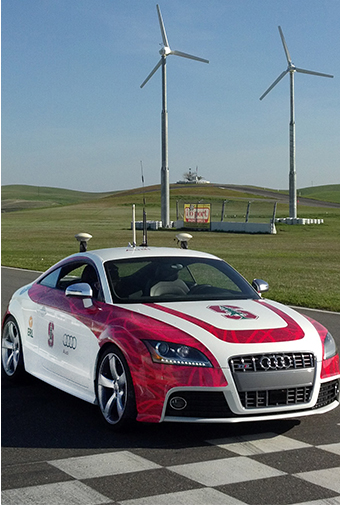 Already the Stanford Audi has performed on the Utah Salt Flats, climbed Pikes Peak and raced to 120 mph on California’s Thunderhill Raceway, finishing the twisting 3-mile road course in under two and a half minutes. That’s all without someone sitting behind the steering wheel, and the track time is slightly less but comparable to a standard race car driven by a professional driver.
